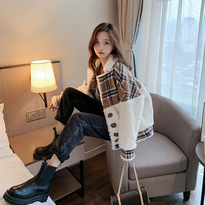 Ženska kratka jakna široki model za proljeće i jesen - imitacija janjeće kože