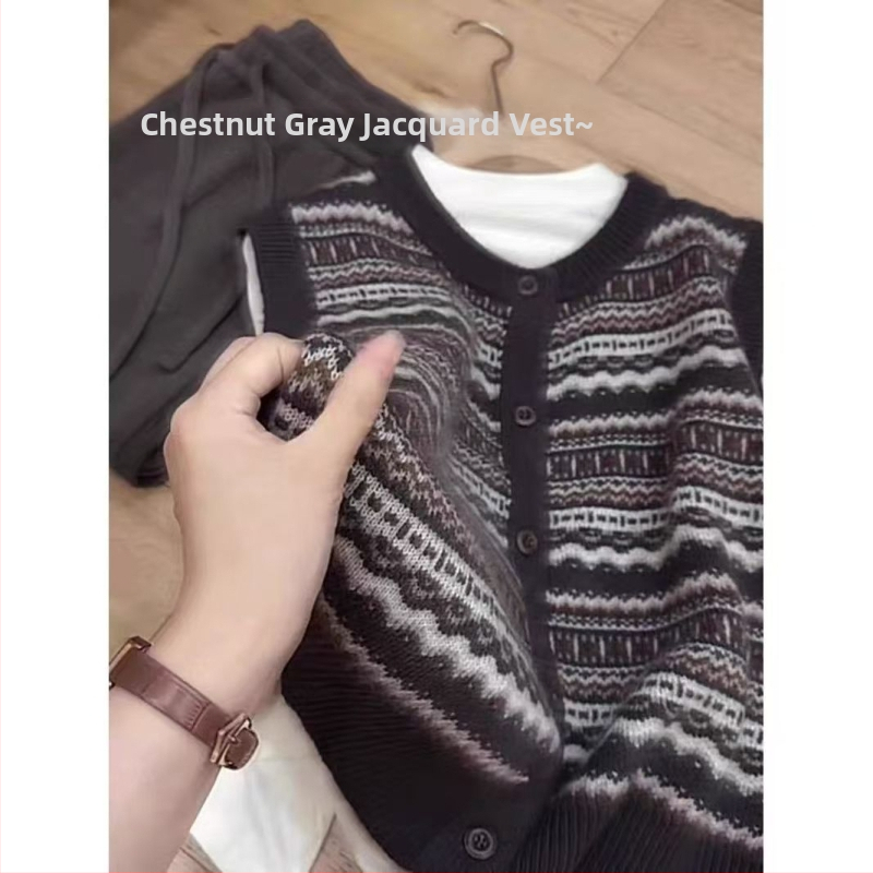 Ženski Chenille jacquard vest s polo ovratnikom, obična duljina, udio spandexa ispod 30%, pulover stil