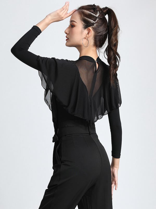 Ženski dugi rukav top/body za ballroom ples, jednofarbni uzorak, tkanina 70% spandeksa