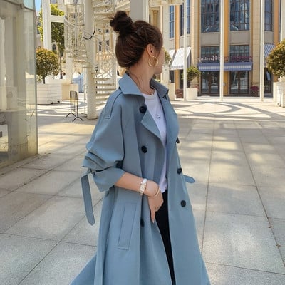 Badu.bg nije odgovoran za kupnju 2021. Ženski trenč kaput s otvorenim ovratnikom Plavi dugi trenč Femme Ženski jesenski dugi kaput s remenom Ulična odjeća od Ženski kaputi izvan obrasca za narudžbu.