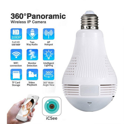 960p 2.0MP H.265 Sigurnosno Wifi svjetlo kamere Panoramsko svjetlo od 360 stupnjeva IP CCTV Video nadzor Fisheye HD žarulja za noćno gledanje