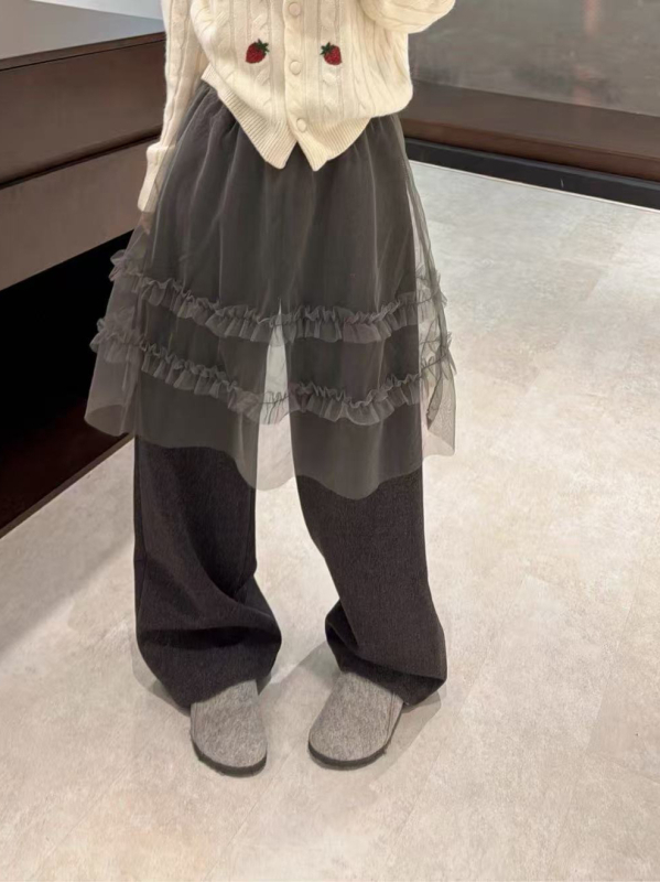 E5666 pamučne opuštene hlače, visoki struk, dugačak kroj, casual stil