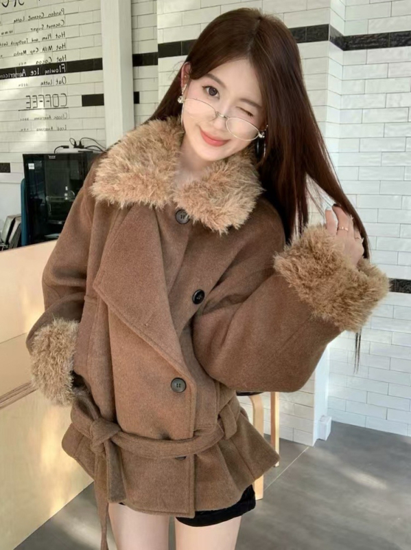 Jakna od ovčje vune s poliesterom i elastanom, kapuljačom, patchwork dizajn, srednja duljina