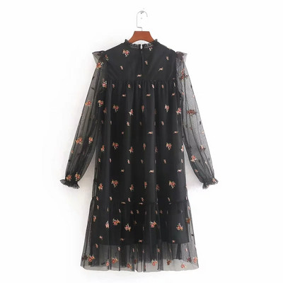 Moderna ženska haljina od pečata s vezom i dugim rukavima