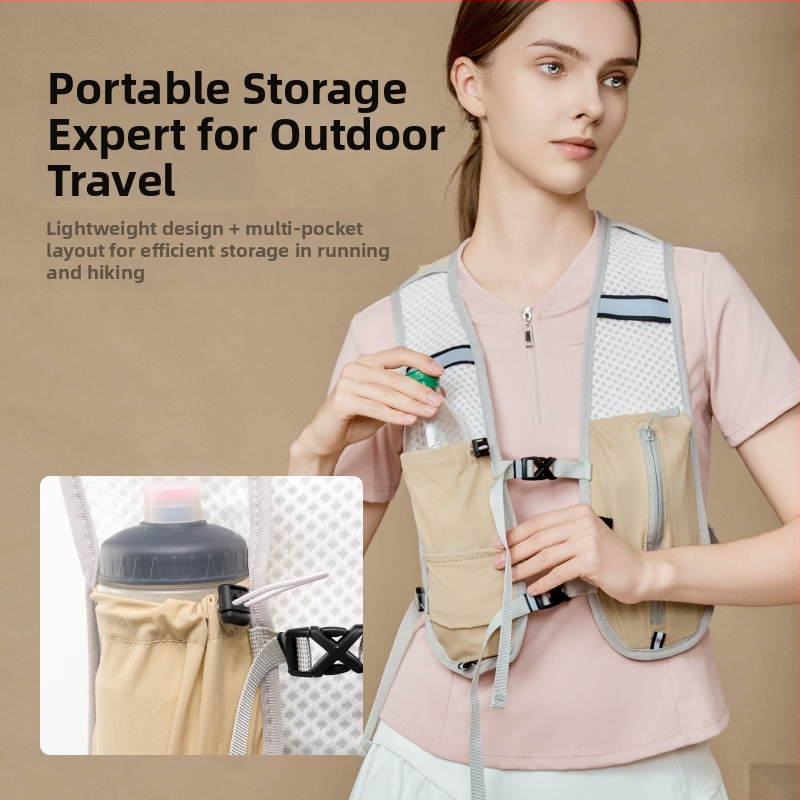 Planinarska vest torba s džepom za telefon i držačem za bocu, prozračan najlon, ultralak, reflektirajuća sigurnost noću, ergonomski zakrivljeni stražnji panel